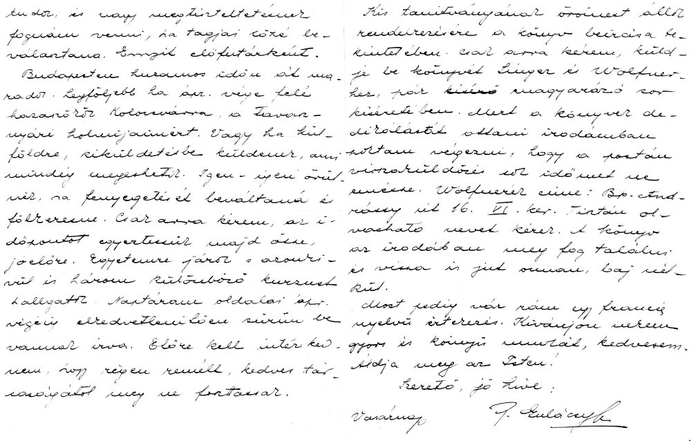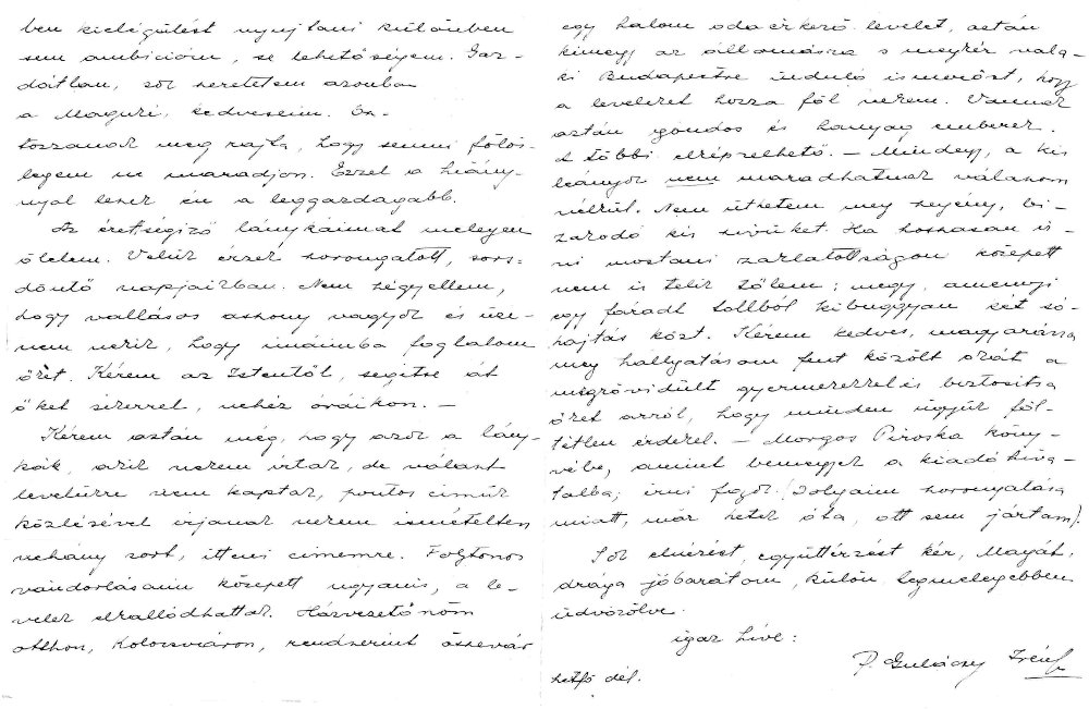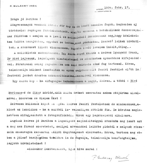 Levelezés Pálffyné Gulácsy Irénnel