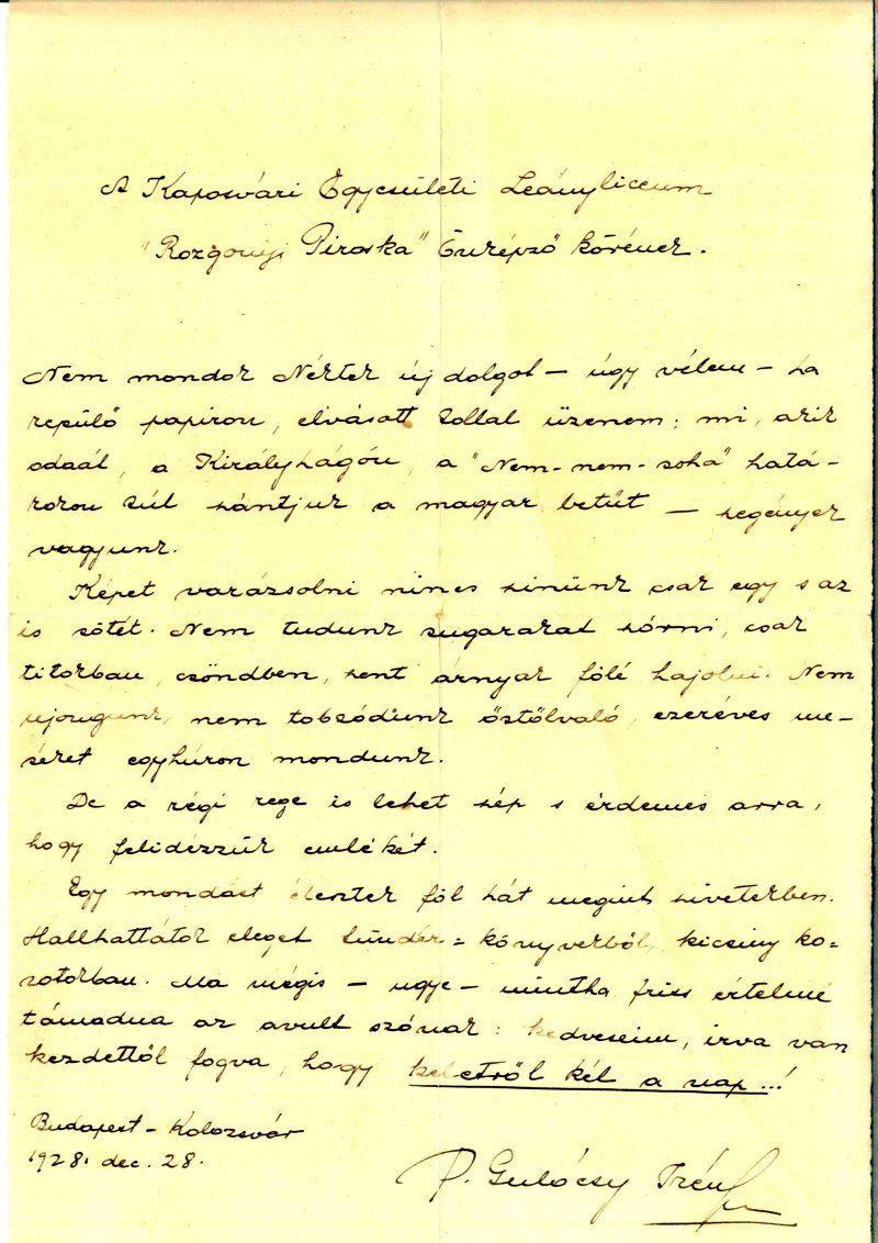 Önképző tagjainak írott levelek