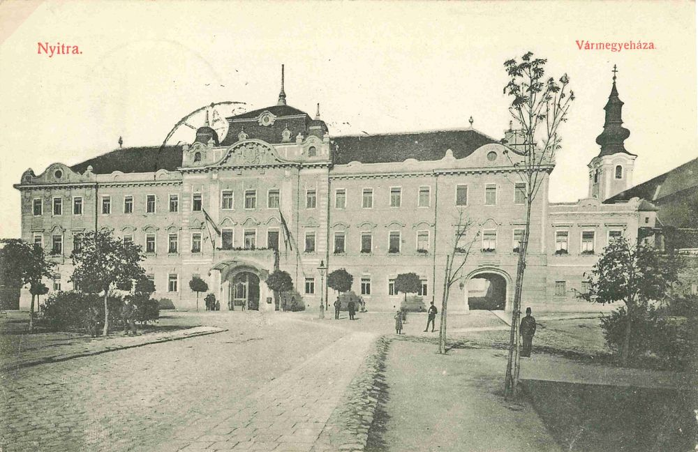 A vármegyeháza 1784-ben épült fel barokk stílusban. Az épületet többször átalakították, részben copf, részben szecessziós stílusban. Ez utóbbi főként a főbejáratra vonatkozik. Enyhén kiugró középrizalitja fölött, a lekerekített timpanon mezőjében gazdag plasztikai díszítés kísétében látható a címer. Ma a Nyitrai Galéria és a Művészeti Iskola otthona.