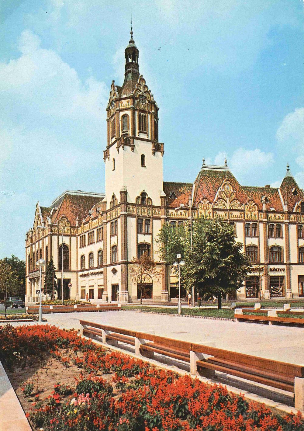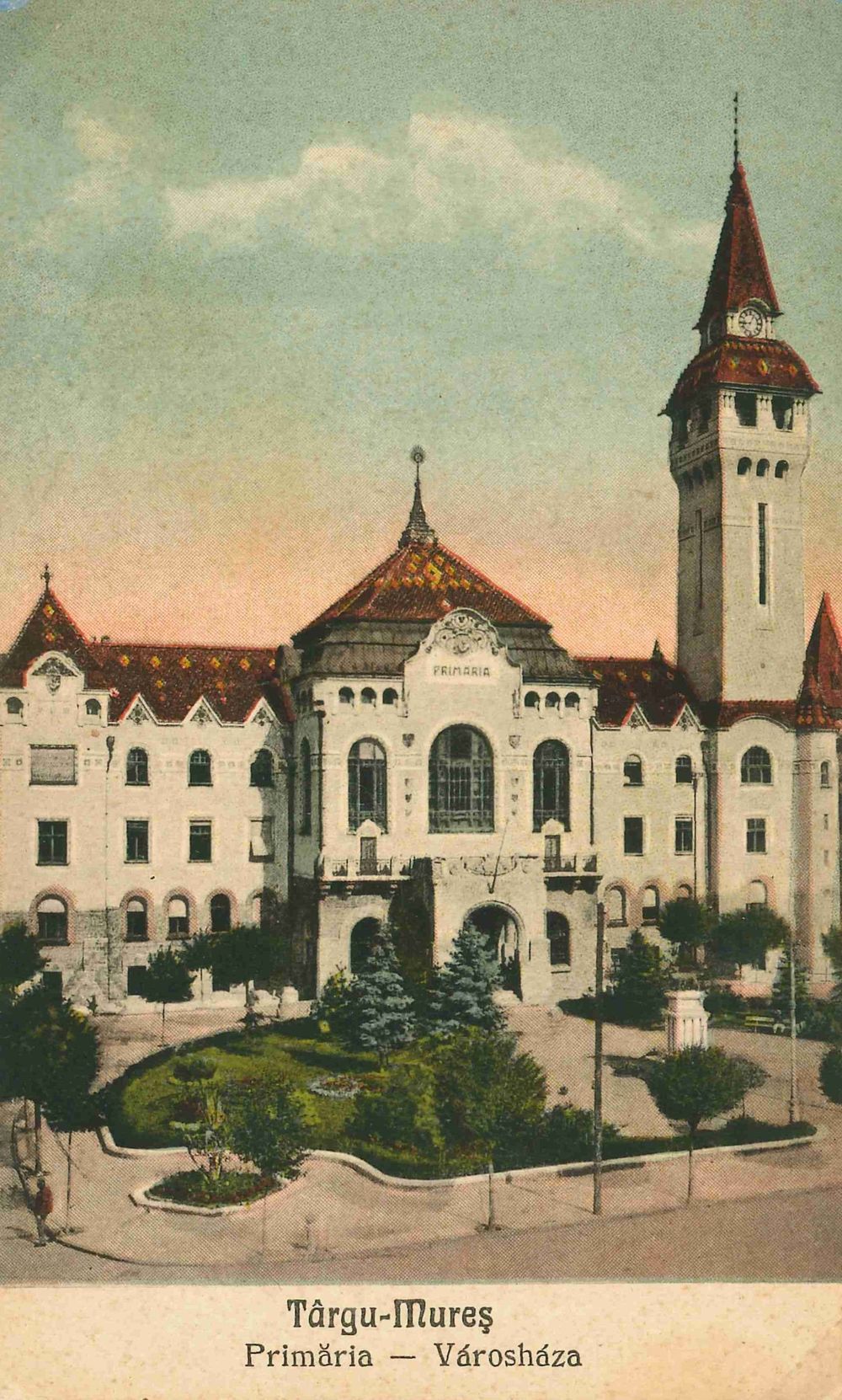 A Városháza 1921 évi felvételen, román és magyar nyelvű felirattal.