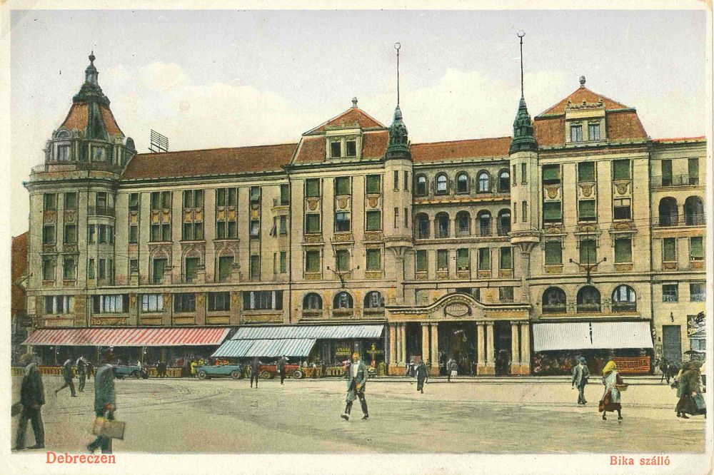 Az Aranybika szálló neve egy helyi gazdálkodó családnevéből származik, akinek fogadójára vasból kovácsolt, bikát ábrázoló cégér került. A szabadságharc idején Bem tábornok is többször megszállt nála. A szállót többször bővítették, 1881-ben Steindl Imre terve szerint, majd első olimpiai bajnokunk, Hajós Alfréd és társa terve szerint szecessziós stílusban, amikor új kávéház, éttermek, díszterem, fürdő és színházzal bővült a szálló.