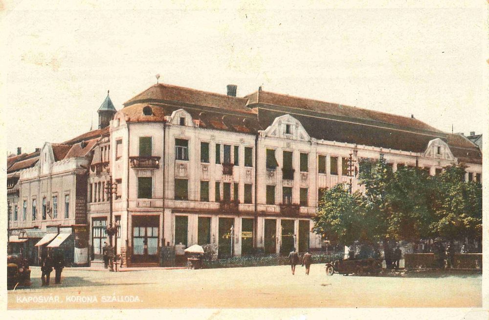 A Korona szálló elődjének vendége volt Ady Endre, Blaha Lujza is. Az épületet 1912-ben lebontották, helyére épült a kétemeletes, sarokerkélyes szecessziós épület Az 1960-as évek átalakításai miatt az eredeti épület stílusjegyei ma már fel sem ismerhetők. A korabeli képeslapok azonban őrzik az épület eredeti állapotát.