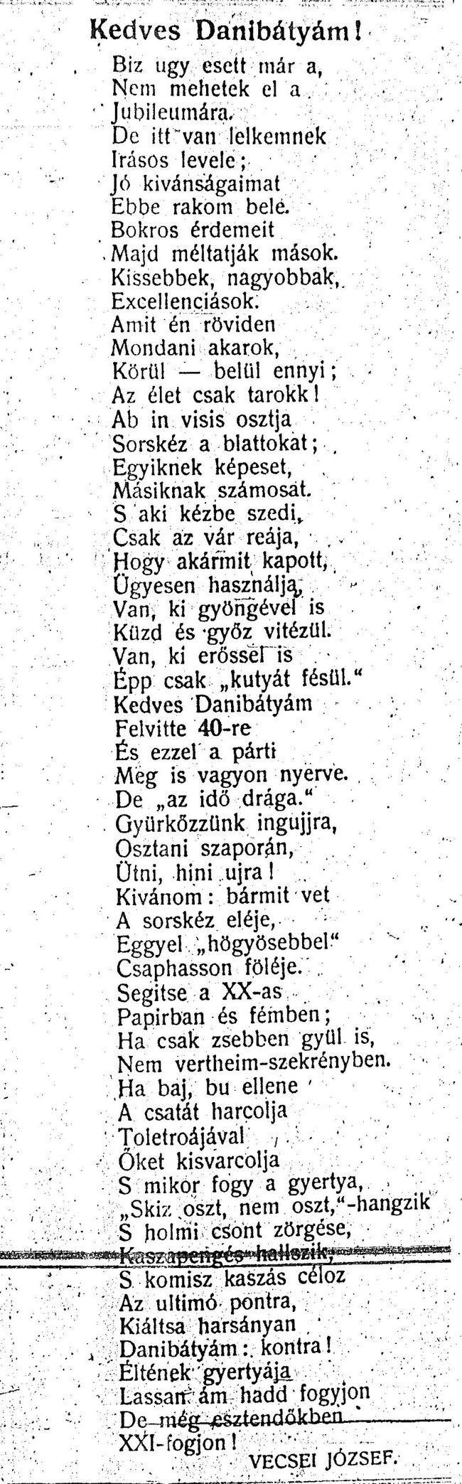 Vecsei József: Kedves Danibátyám!