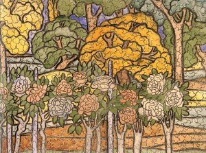 "A századforduló éveiben szecessziós textilképeket, plakátokat, könyvművészeti és tárgyformáló munkákat készített."3