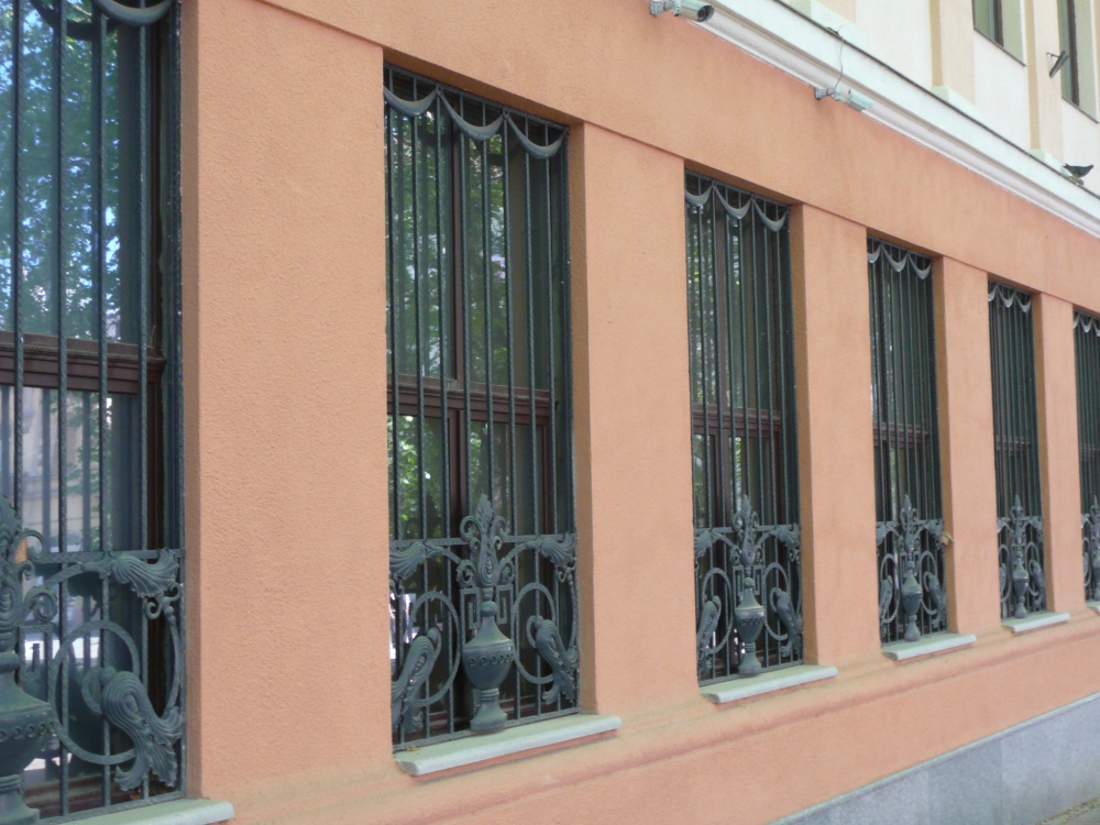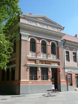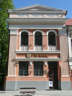 A kovácsoltvas-művességben is megjelentek a népi motívumok. "Az új stílus meghonosodása sajátosan helyi, magyar formanyelv kialakulásához vezetett, és díszítőmotívumokért a népművészethez nyúlt vissza."9 Az egész épület monumentális jellegű, a pénz hatalmát kívánta dicsőíteni az építészet eszközeivel. A siker, a megelégedettség, a boldogság érzetét közvetítik a virágfüzérek és a kehelydíszek. Az igényes műlakatosmunka arra hívja fel a figyelmet: biztonságban tudhatja a pénzét az, aki itt őrizteti. 2001-től az épületben a CIB Bank üzemel, előtte az Országos Takarékpénztár fiókja működött benne. |