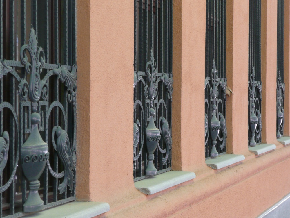 Az épület elegáns, harmonikus megjelenésének titka abban van, hogy Lamping József a műlakatos díszítéseket is maga tervezte, egységben az épület többi részével. A díszserleg forma megjelenik az ablakok alatt, a kapu- és ablakrácsokban is. Dausek Géza volt a századelő legfoglalkoztatottabb épület- és műlakatosmestere Kaposváron, az ő műhelyéből kerültek ki a bankház ablakrácsai. A lemezből domborított tulipános ablakrácsok Kaposvár legszebb műlakatosmunkái közé tartoznak. Szabó Tamás szerint a mintázatban három, egymástól jól elkülöníthető építészeti irány ötvöződik: a laposacélból készült meander, az újat kereső szecesszió és a sárkányszárnyhoz hasonló kiegészítő elemek. A rácsok mintázatának tervezésénél figyelembe vették a Fő utcai homlokzat gipszstukkó díszítését.8 |