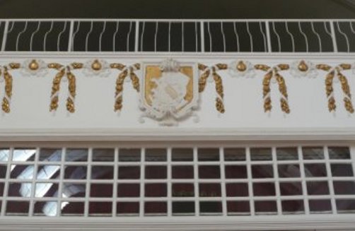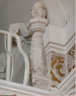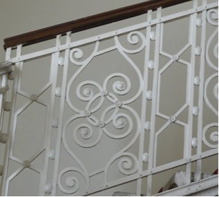 A lépcsőkorlát és a lift Scholcz Gyula és Noficzer Ferenc, az asztalosmunka Szarka János munkája. A liftet a Ganz-gyár készítette. Ez eredeti, csak a sodronykötelet cserélték ki. A város első liftje itt működött. |