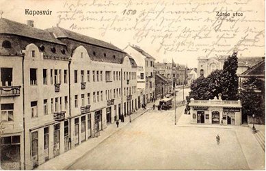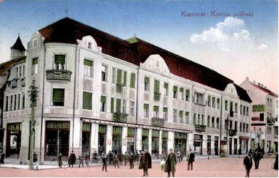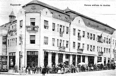 A "boldog békeidők" idején Kaposvár egyik legszebb szecessziós épülete a Korona Szálló volt. Az épület korabeli képeslapokon: A Korona Szálló épülete a Zárda utca felől |