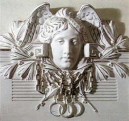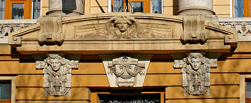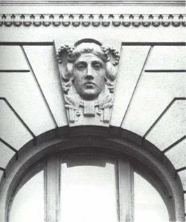 A hajlékony vonalak, dekoratív növényi díszítések nemcsak az épület külső megjelenésében dominálnak, hanem a belső térben is, egységet képezve az épületben. A titokzatos, álomszerű, ifjú női alak jellegzetes motívuma a szecessziónak. A homlokzaton és az épület egyéb díszítésén jelenik meg. |