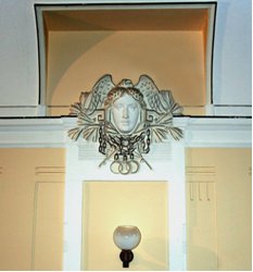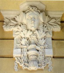 Ceres: a gabona római istennője. Primavéra: tavasz, kikelet Rizalit: (az olasz risaltóból), kisebb-nagyobb kiszögellése az épület homlokzatának, melyet azért alkalmaznak, hogy vele a hosszú homloksort függőlegesen tagolják és így élénkítsék. A kiugrás nem nagy (8-30 cm), nehogy nagy árnyékot vessen, és ezzel az összhangot zavarja. Helyzete szerint van közép-R., oldal-R. és sarok-R. (Pallas lexikon). Pilaszter: a fal síkjából kiemelkedő, négyszög keresztmetszetű, fejezettel és lábazattal képzett felülettagozó elem. Kiülése rendszerint csekély, általában nem haladja meg a szélesség harmadát. Ha ennél erősebb, akkor már nem pilaszternek, hanem falpillérnek nevezik. Timpanon: épülethomlokzat orommezeje, szoborművekkel díszített, háromszögletű homlokzati rész. Travé: boltszakasz francia neve. |