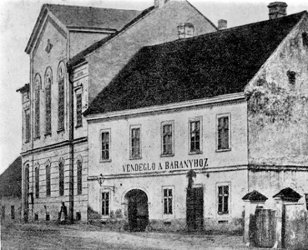 A város tulajdonában álló Bárány-vendéglő 1863 előtt városház volt hivatalos helyiségekkel. Mellette épült fel a háromszobás, szalmával fedett jegyzői lakás. Hosszas viták folytak arról, hol lehetne városházát építeni. Négy év után, 1867. január 23-i határozatában döntött úgy a városi testület, hogy az új városházát és jegyzői lakot építenek a régi melletti telken. 1868-ban készült el az egyemeletes épület Heindlhoffer Antal tervei szerint, amelyben a rendőrség is helyet kapott. Az épület kinézete: "...földszint bal oldalán kapubejáró, mellette szegmensíves ablakok. E mellett középső részén három félkörös nagyméretű ablak klasszicista hagyomány őrzésével, középrizalit oromzatos lezárással, ívsoros párkánnyal. Két szélső ablak egyenes szemöldök párkánnyal." 2 |