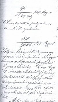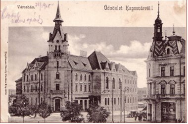 "A városház felavatása. Gyönyörű verőfényes nap virradt reánk. A tavaszi nap sugarai bearanyozták az ünnepi díszt öltött várost, s a szép reggel és a fellobogózott házak teljessé tették az utcákon nyüzsgő közönség ünnepi hangulatát. A városház előtt volt a legnagyobb élénkség. A gyönyörű, új nagytermet reggel 9 órára már zsúfolásig megtöltötte a közönség, mely ezúttal először gyönyörködött ebben a kényelmes, szép, tágas teremben... A Hymnusz elhangzása után a polgármester tartalmas, szép beszéddel nyitotta meg a közgyűlést. Vázolta a városok hivatását, felsorolta, mennyiben felel meg Kaposvár a saját feladatainak. A nagy tetszéssel fogadott beszéd után Siposs Géza városi főjegyző tartott felolvasást városunk múltjáról, fejlődéséről, jelen viszonyairól, melyek között az adatok egész seregével állította a hallgatóság elé közállapotainkat, végül pedig a városház épületének történetét adta elő." |