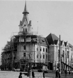 "A háború alatt az épületek díszítései, tetőfelépítményei sorra sérültek, elpusztultak, megváltoztatva az utcák, terek egykori hangulatát. A városházával szembeni volt Erzsébet Szálló is elveszítette díszes tornyait, melyet azóta szerencsésen helyreállítottak."8 |