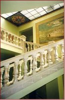 A falfestményeket Udvary Géza, az Iparművészeti Főiskola tanára készítette A lépcsőházban a mester Giocamo de Rossi 1686-os rézmetszete alapján a kaposvári várat festette meg |