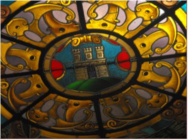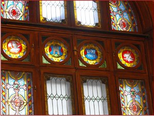 A tanácsterem üvegablakai és a tetővilágító Róth Miksa neves üvegművész műhelyében készültek. Kaposvár címere megtalálható az épületben üvegen, kőből és falra festve is. |