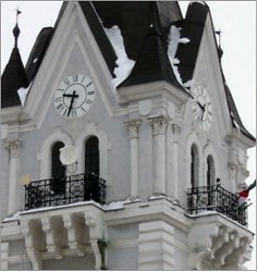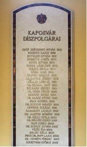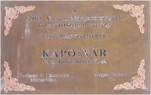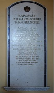 A Városháza falain az emléktáblák, az évszámok Kaposvár és Magyarország történelmének jeles dátumaira emlékeztetnek - olvashatjuk a Városháza százéves építésének emlékére kiadott ismertetőben. (2004) |