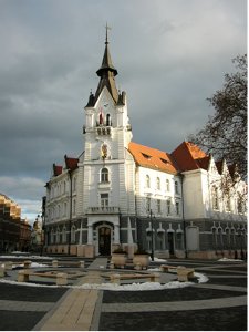 Az új épület főszárnya hatszintes, ami jól illeszkedik a régi négyhez. A harangjáték 2002 júliusában szólalt meg először a toronyban. A berendezés tizennyolc harangból áll, minden óra előtt öt perccel üdvözli a városlakókat. Az épületben ülésezik a városi közgyűlés, de különféle bizottságok munkája is itt zajlik. Díszterme egyben házasságkötő terem, és konferenciák, rendezvények színtere is. Meghatározó szerepet tölt be a Kossuth tér építészeti együttesében. Helyi védelem alatt álló épület. |