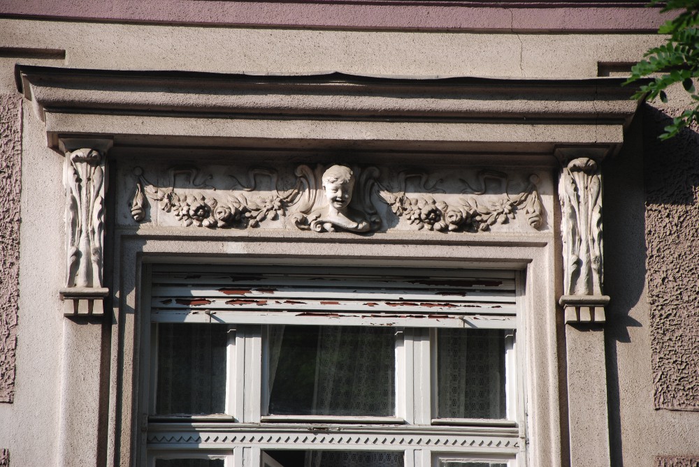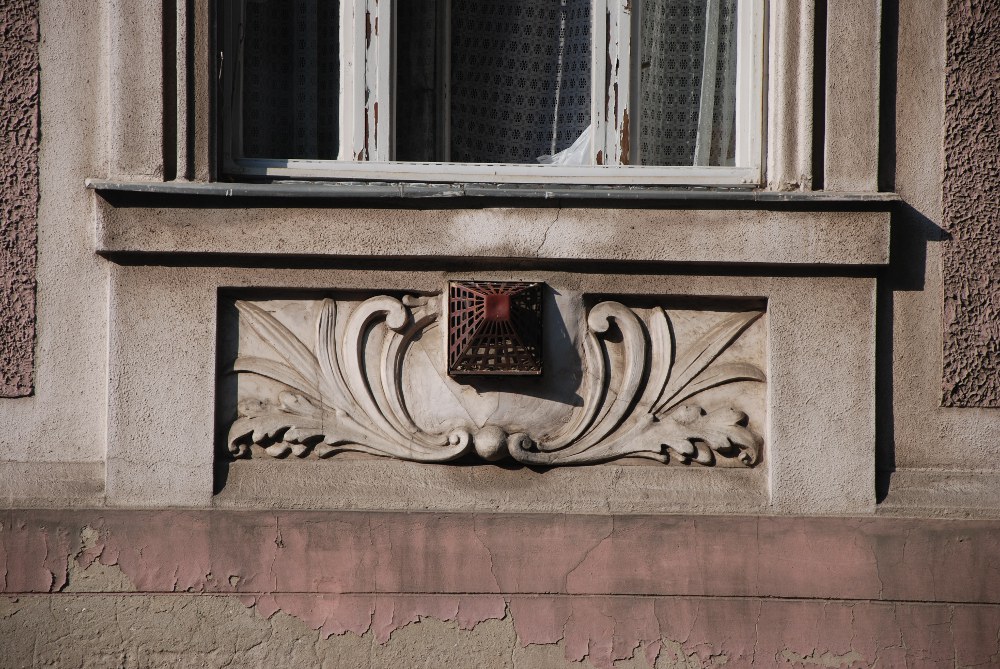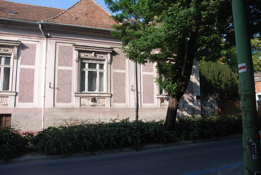 A mellette álló szecessziós stílusú Königsberg-villa építésének idején készült (ma már a Technika Háza része), feltehetően 1911-ben, de erről írásos dokumentum nem maradt. A ház lakóinak elmondása alapján az épület erős lila színű volt, ennek árnyalatát megőrizték az idők során. "Az épület tömege és a homlokzat utcai hármas nyílásrendje egyszerű kialakítású, az oldalhatáros beépítési mód miatt nincs kapu az épületben. A homlokzatot különlegessé teszik az alkalmazott díszítések. A historizmusra - és többféle stílusra - jellemző kevert díszítőelemek (virágfüzér, angyalfej) láthatók az erőteljes, egyenes záródású szemöldökpárkány alatti és az ablak fölötti falmezőben. Az ablakok alatti falszakasz plasztikus növényi levélmotívumai egészen eltérőek, inkább a szecesszióra jellemzőek. Kár, hogy a konvektor szellőzőnyílásai miatt durván megsérültek. A homlokzatvakolaton alkalmazott eltérő struktúrák is hangsúlyos elemek."2