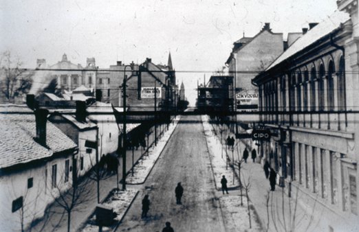 A városi közgyűlés már 1904-ben elhatározta, hogy az igazságügyi palota jobb megközelíthetősége érdekében a Fő utcát a vármegyeházzal szemben összeköti az Esterházy utcával. 1906-ban újból napirendre került az erre vonatkozó tervek elkészítése. (Somogyvármegye, 1906. december 8.) A területen fekvő ingatlanok kisajátítására is szükség volt. (Somogyi Hírlap, 1907. ápr. 21.) A vármegyeházzal szemben utcanyitás céljából 1910-ben vették meg az Eibenitz Ede-féle házat. Fekete Gyula Az ötven év előtti Kaposvár című könyve szerint Eibenitznét az ájulásból úgy kellett felmosni, amikor meg tudta, hogy a város akarja megvenni a házukat. A ház kapuján és telkén keresztül gyalogosan elérhetővé vált az Esterházy utca, amíg az Eibenitz-közt utcatestté nem alakították.1 Az 1922-es Bereczk-féle várostérképen még csak tervezett utcaként szerepel a Kossuth Lajos utca, ami a Fő utca és az 1904-ben megnyílt Árpád utca (a mai Kossuth Lajos utca) középső részét kötötte volna össze. Az utcanyitás terve csak 1928-ban, a megyeházzal szemben felépülő Dunántúli Bank építése során valósult meg. Ekkor nyílt meg a Kossuth Lajos utca. |