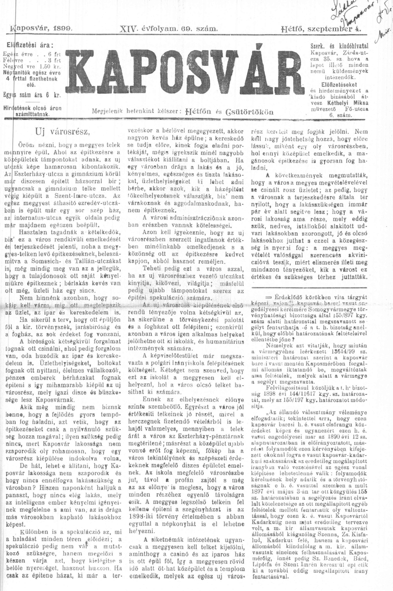Kaposvár, 1899. szeptember 4.