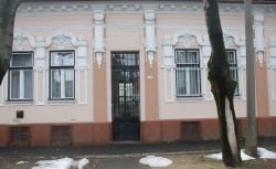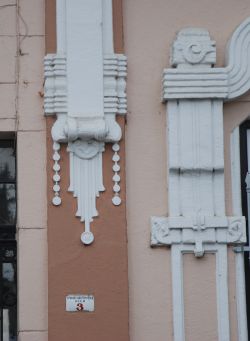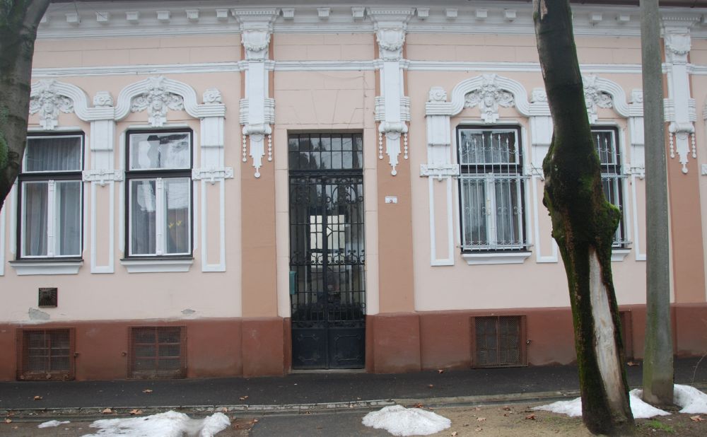 "Egészen egyedi és gazdag díszítést alkalmaztak az egyébként nagyon egyszerű tömegű földszintes polgári lakóházon. Az épület szimmetrikus kialakítású, középen gyalogos bejárati kapuval és két oldalán kettő-egy ritmusban elhelyezett ablakokkal. Az épület különlegességét a homlokzatot tagoló pilaszterek és az ablakok körüli vakolatdíszítés adja. Érdekes módon a bejáratot nem hangsúlyozták." (Fábián Éva építész közlése). A szecesszió sajátos motívumaival: a növényi indákkal, levelekkel, virágokkal Magyarországon is megjelent a nő ábrázolása festményen, kerámián, üvegalkotáson, textilen, könyvművészetben, plakáton és dekoratív épületszobrászati munkákon. |