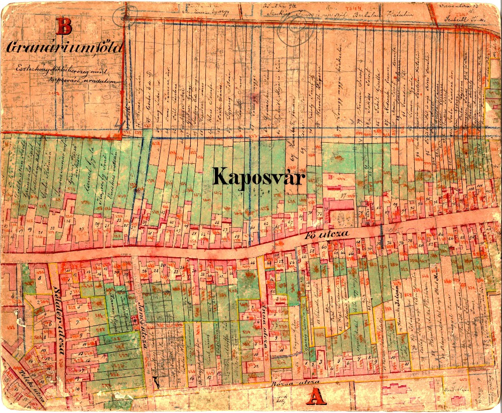 Az 1865-ben megjelent térkép a mai Bajcsy-Zsilinszky és Damjanich utca közötti területet Granáriumföldként jelöli, amely Eszterházy Miklós herceg kaposvári uradalmának része volt. Bal oldalon a Zárda utca, jobb oldalon a Meggyes-telek (a mostani Dr. Kovács-Sebestény Gyula utca) határolják. A granárium magtárat jelent, az Esterházy-birtok magtárépülete a jelenlegi Tűzoltólaktanya helyén állott. A granáriumligetet angolparknak is nevezték, mindenkinek szabad ki- és bejárása volt e területre.1 Bereczk Sándor 1901-es várostérképén már szerepel az utca név nélkül. Ennek a területnek a neve Vica-völgy volt Lévai József György szerint. Az 1922-ben megjelent Kaposvár-térképen már áll néhány ház az utcában. Megépült a Németh István utcára néző két sarki ház, amelyet Gáspár Gyula neves építőmester kivitelezett. A 2. számú épületben lakott dr. Kovács-Sebestény Gyula (1874-1917), Kaposvár polgármestere, akiről 1922-ben elnevezték az utcát.2 Ma a Szent Imre Plébániának ad otthont a ház. A Somogyi Hírlap 2010. márc. 11-i számában viszont az áll, hogy a Kertész utcát 1925-ben nevezték el dr. Kovács-Sebestény Gyuláról. (A Kertész nevet ezután a Donner városrész egyik új utcája kapja meg.) Az utca neves épülete a Takács Gyula Emlékház, a költő egykori otthona. A szecesszió jegyeivel készült 3. szám alatti lakóház feltehetően 1909-1912 körül épült. Levéltári adatok alapján 1925-ben átalakították az épületet. |