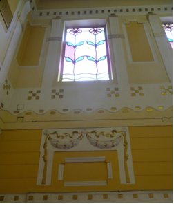 A századforduló villaépítészetében különleges helyet foglalt a festett üvegablak. Hordozhatott szimbolikus, metaforikus jelentést, felidézhette a természeti elemeket formájával. Az üvegalkotás minden esetben a fényhez kapcsolódott. Színei a naptól ragyogtak, vagy a belső világítás keltette életre az üveget. |