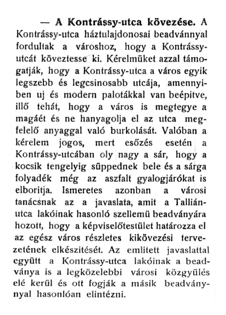 A Kontrássy utca kövezése = Somogyvármegye, 1906. június 3.