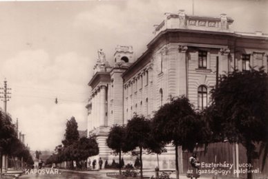 A harmincas évekre megváltozott a város külső megjelenése. Az Esterházy utcán, a törvényszéki palota tájékán sétáló idegen ezt láthatta: "ragyogó tisztaság mindenütt, ragyogó gyepszegélyek, kugliakácok, piros muskátlik és szép asszonyok. Bizonyára ezektől tanult Justitia istenasszony is, és ezért púderezte be magát meszes kőporral, valódi kővolta dacára." (Csevegjünk az új Kaposvárról = Új Somogy, 1930. december 2.) |
