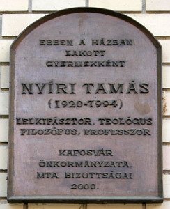 Ebben a házban élt ifjúkorában dr. Nyíri Tamás teológus-filozófus professzor, a Táncsics Mihály Gimnázium egykori kitűnő tanulója. 2000-ben került emléktábla a háza falára. (Emléktábla-avatás főhajtással = Somogyi Hírlap, 2000. november 4.) Ma Elit üzletház a neve az épületnek, irodák találhatók benne. |