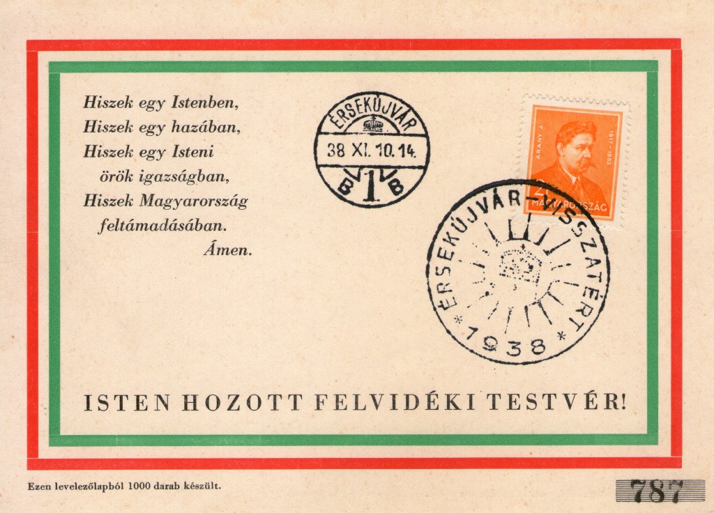 „A felszabadulás örömünnepén küldje el ezt a levelezőlapot felvidéki rokonainak és ismerőseinek. Ebből a levelezőlapból 350.000 darabot mellékeltünk Tolnai Világlapja, Délibáb és Párisi Divat példányaiba teljesen díjtalanul” – olvasható a képes levelezőlapon.