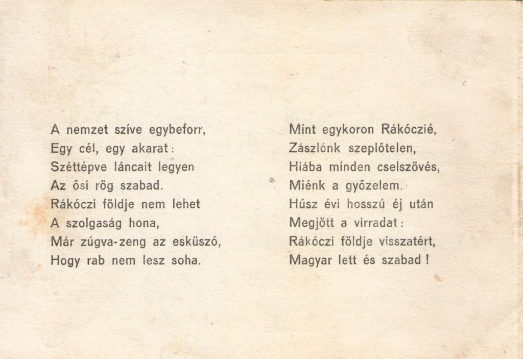 Rákóczi földje, szép hazánk e gyöngye visszatér
